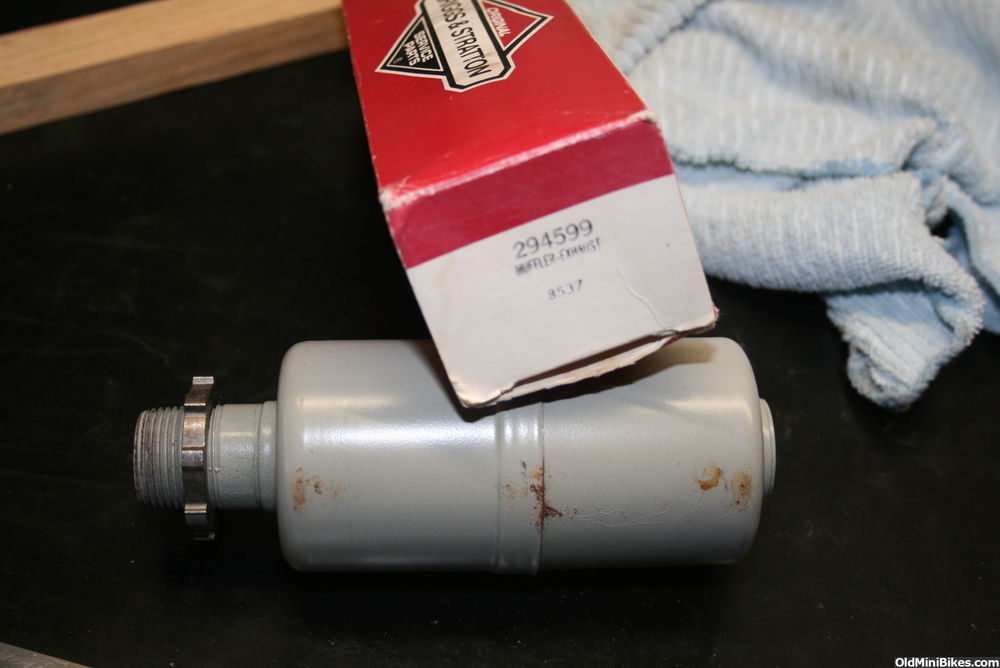 I have a new, old stock, B&S muffler, This fits the 5HP engines, or any engine that is 3/4"NPT. This is the good old heavy one and I am including the heavy "real deal" lock nut, not like the cheezy conduit nuts they use today. These vintage pieces can be yours for $22.00, priority shipped to the lower 48. And like all my "summer sales", 100% of the proceeds will go to a charity to am involved in