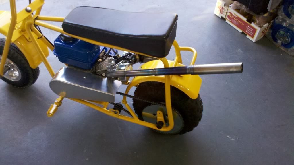 Here is a doodlebug that I threw together this weekend with my pops while he was down for the holidays. Its just a daily rider with your basic clone, billet parts, stainless valves, re-jeted carb, valve springs etc. And of course my new brute power multi-staged pipe! Will get a video up soon!