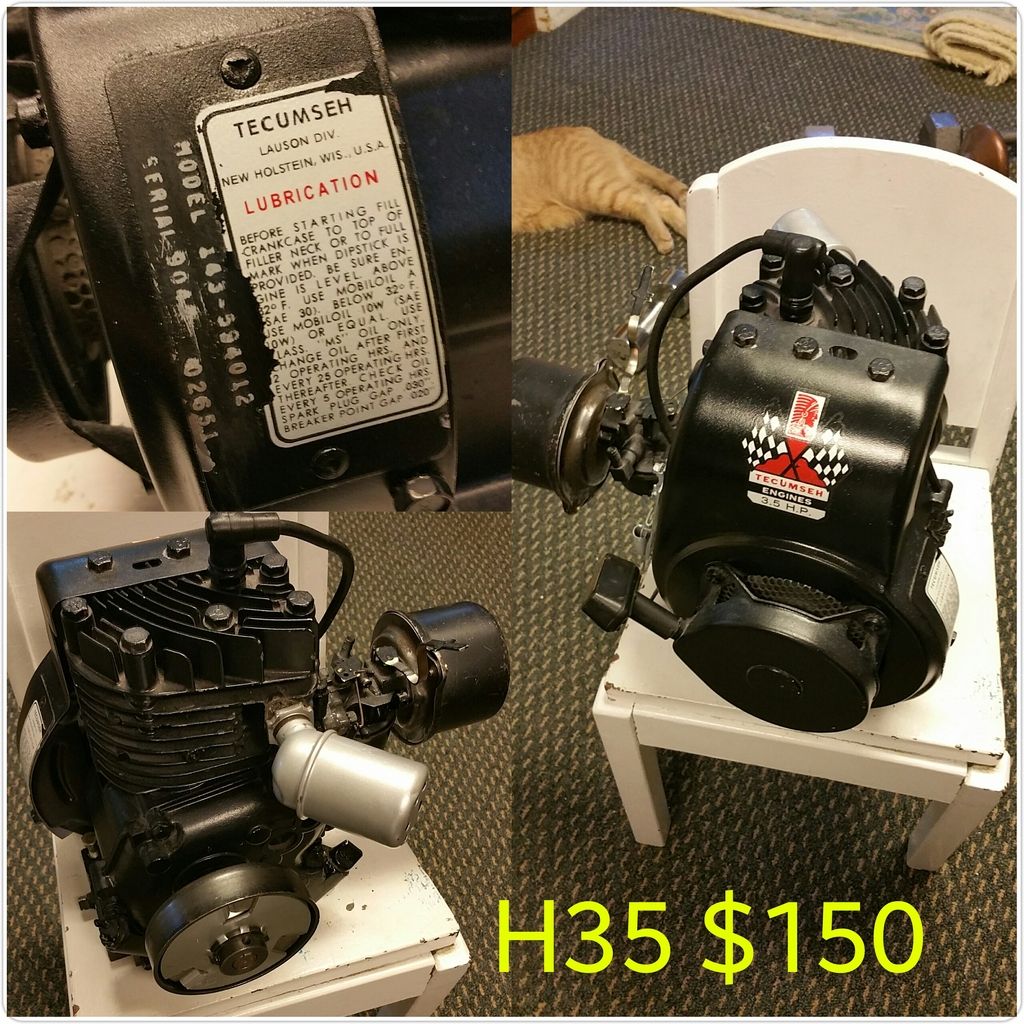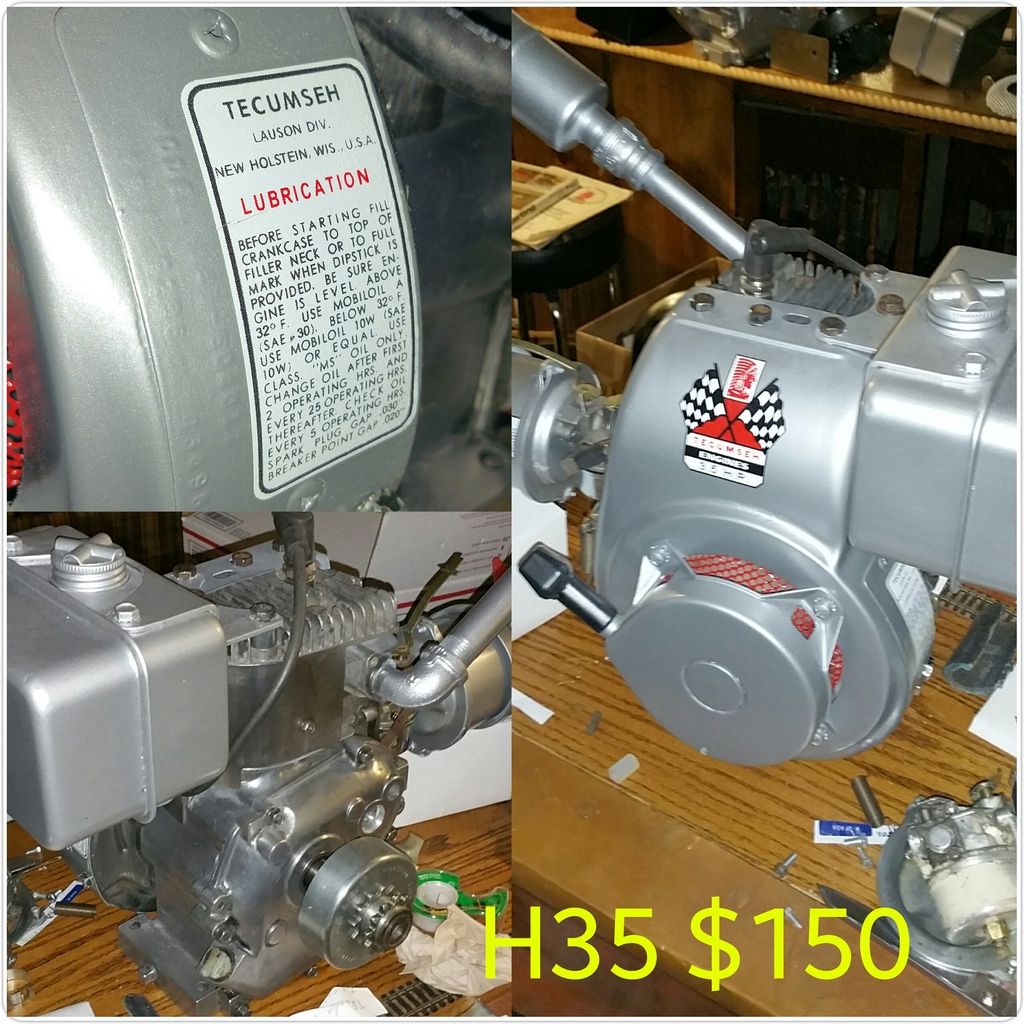 Time to purge. I'll start with the engines. Prices are without shipping. You are welcome to come pick it up or if you need it shipped we'll price that out together. All painted engines with the new decals where running at the time I painted them. All the rest have compression and some spark. If its got a clutch its included. PM me if interested or need more info.