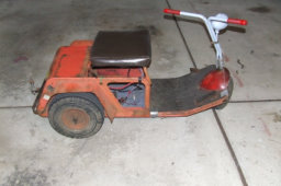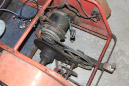 The basics are pretty much that it is an electric driven vehicle that is stupidle primitave. It has a 36v Bosch DC motor, but given the constraints of the frame only operated at 24v (assuming it used regular group 34 batteries). Anywho, at 24 volts the thing did move out pretty decent. The driveline is STOUT, everything is on huge pillow blocks with grease fittings. more or less, its a belt driven primary to a jackshaft with a standard issue disc brake and then chain to the axle which has a nice diff on it as well.