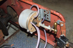 Somewhere along the lines was this really clandestine switch which I can only assume was for some type of reverse. I just happened to have a high current switch which would allow me to do this and not look like a hardware store threw up. (and actually work). Speed control was 2 settings, low and high. Automotive starter solenoids did the bulk of the work, with the low speed simply using a resistive element to bleed off the extra current.