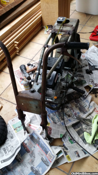 Hi! My name is MurmurWhiskey, and I recently bought my first two bikes from a neighbor. One is a Honda and the other is a mini bike that I can not identify. It currently has a Predator 79cc engine on it, but I have the original. I also have A LOT of parts on the way. :thumbsup: Any help identifying the mini bike would be much appreciated. I have tried to post pictures to the album on the site, but keep getting errors ( It says: We're sorry, but the system experienced an unrecoverable error. Please try again later