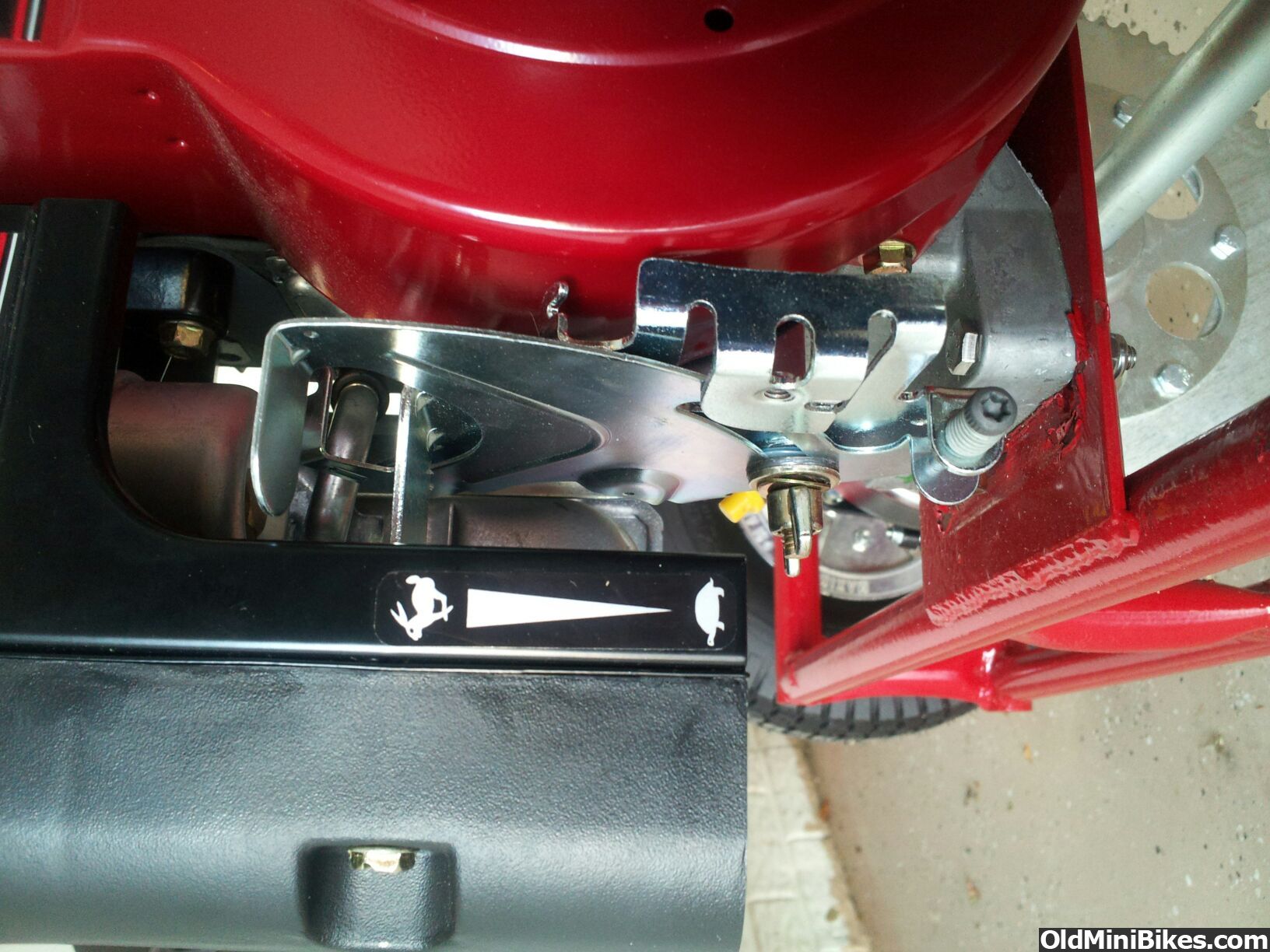In that pic you can see a limiter screw that only allows you to throttle it up so far, then it stops when it hits the screw... Right now the tab on your wiggle plate is jammed tight to the end of the screw...