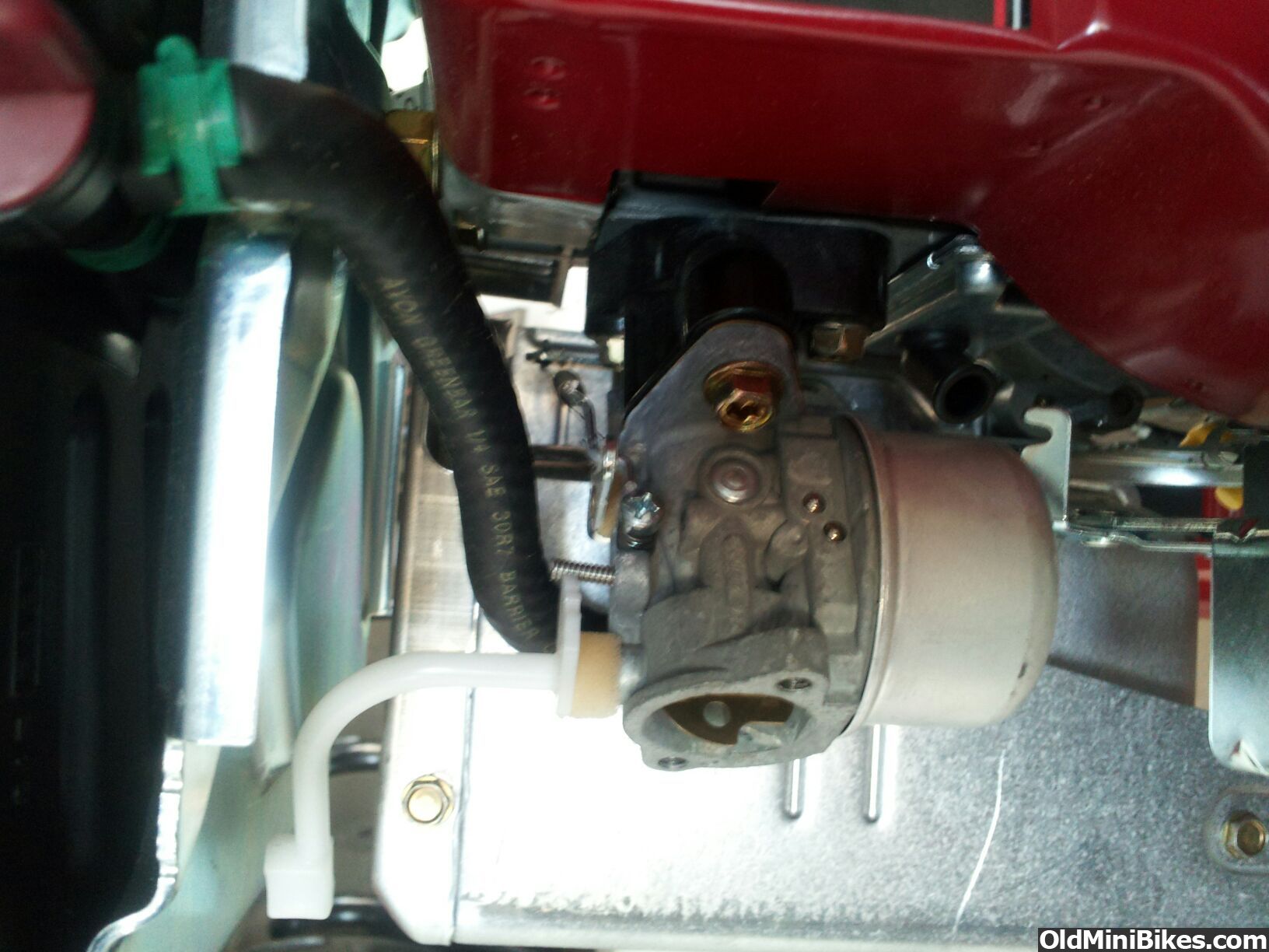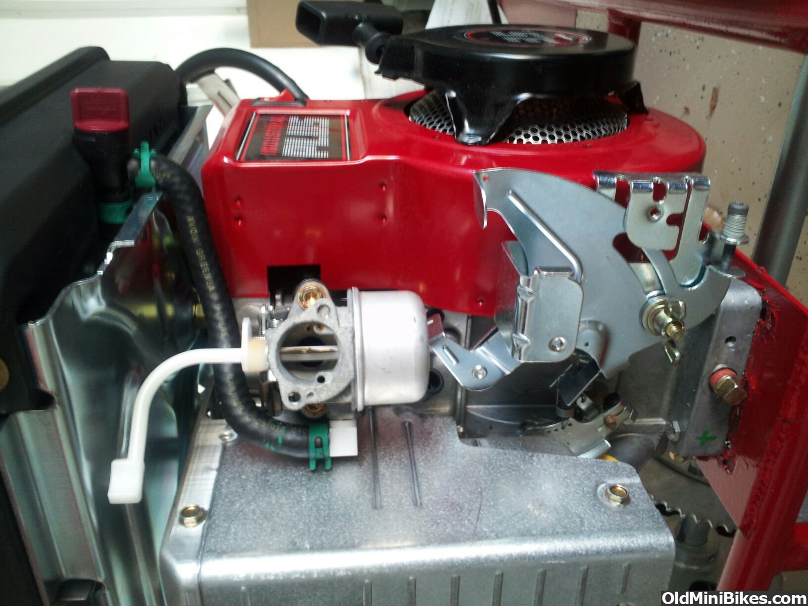 You've got one of the super modern bowl carb engines.. Those things run like a bitch.. :drool: I had to put a Tecumseh carb on one for a buddy because the carbs aren't that great.. But the Tec carbs bolt right on and damn near just work with very little doing... It made his Industrial Plus 5 horse a friggin NIGHTMARE on that little 4 inch wheeled Manco.. His 50 pound kid rips trenches as long as the yard... I took it down the road and pushed it wide open beyond the governor and scared myself to death.. Stock motor.. :laugh: