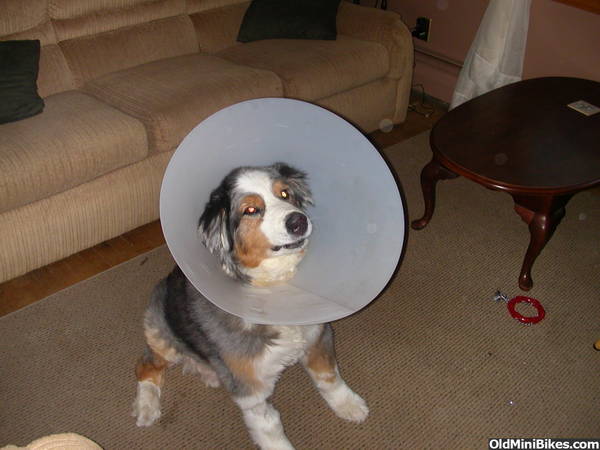 My Harley had a growth on his nose so we took him to the vet on Tuesday and the Dr wanted to remove it, so of course we said yes. He went in the very next morning, they couldn't remove all of it as it was too big :doah: they did a biopsy and sent him home :thumbsup: I should have shot some video of him all stoned bouncing around the house with his cone :doah: