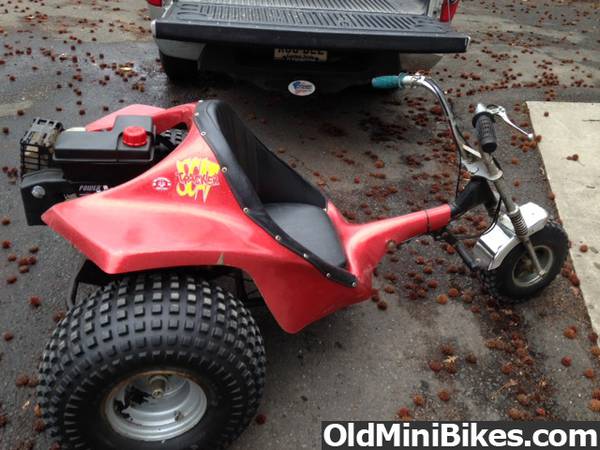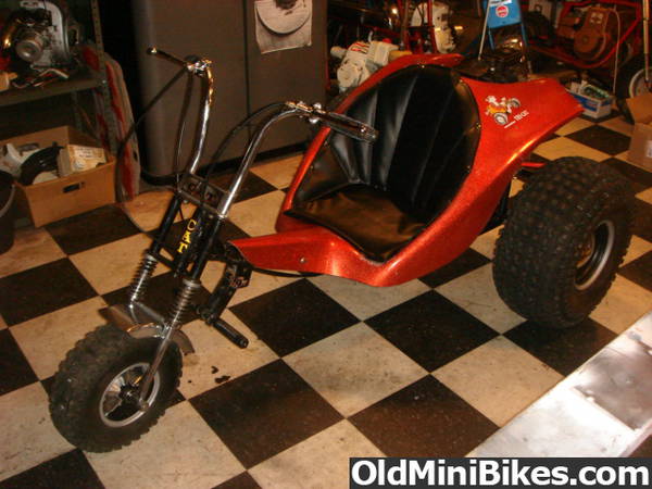 A guy I was talking to at an automotive swap meet told me about this trike he had behind the garage ,he told me to take a look at it and if I liked it to get it. the heck out of there . So I did what any of you would have done. I brought it home and took a few pictures to share with OldMiniBikes.